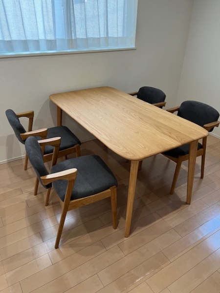 北名古屋市のお客様、北欧風ナチュラル天然木オーク無垢材ダイニングセット納品しました。