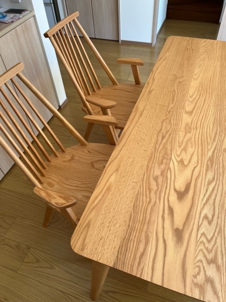 北欧家具風 名古屋市西区のお客様オーク無垢材ナチュラルテーブル、ウインザーチェア納品しました。名古屋ナチュラル家具,おたい家具