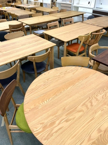 ナチュラル家具名古屋,おたい家具、北欧家具風、天然木オーク無垢材テーブル&オーダーチェアなど60脚展示